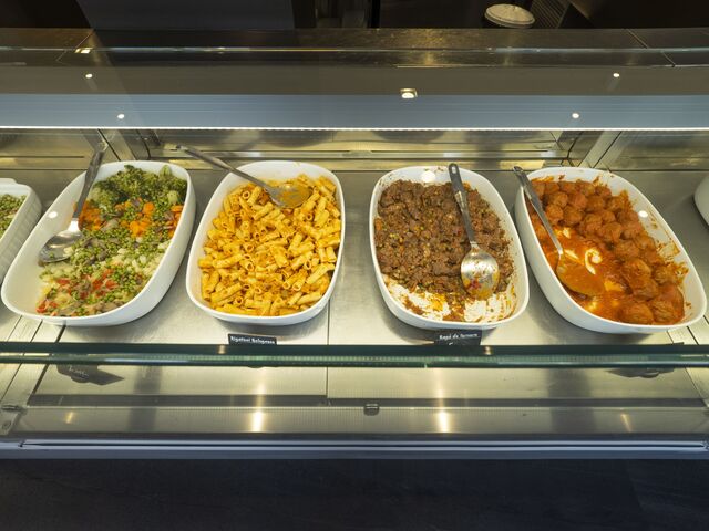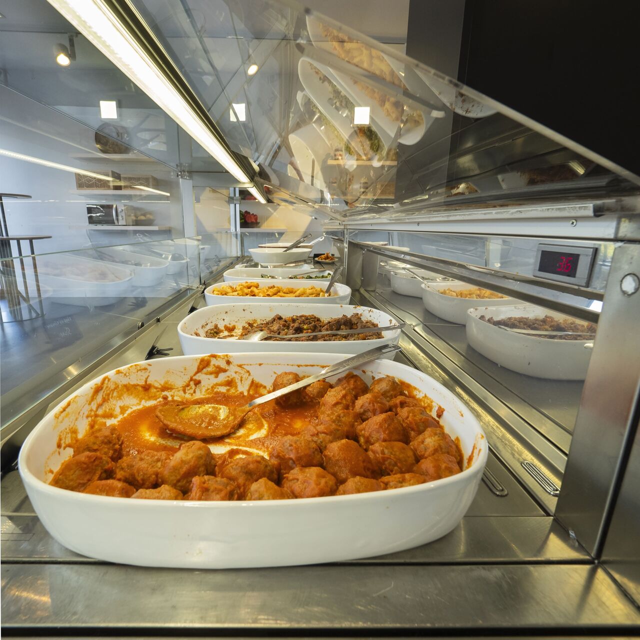 Disfruta cada día de un equilibrado y sabroso menú compuesto de un primer plato, un segundo plato y podrás elegir dos productos entre pan, bebida o postre.